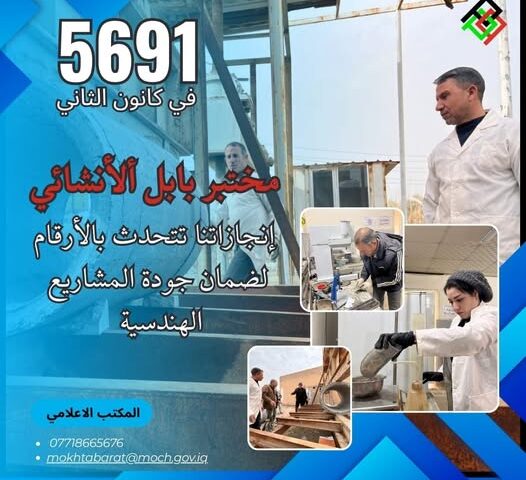 اجراء الفحوص المختبرية لمختلف المواد الإنشائية والتي تستخدم في المشاريع الإنشائية