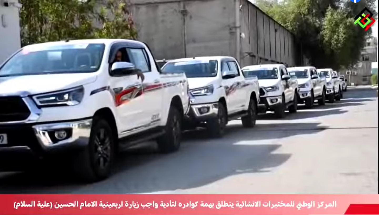 وشملت الحملة تسيير (٨٣) عجلة مختلفة الأنواع بضمنها الخدمية من مقر المركز الوطني في بغداد والمختبرات الإنشائية في مختلف المحافظات، تعزيزًا لدور المركز في خدمة الزائرين والمساهمة في إنجاح خطة الزيارة المليونية بما يعكس قيم التضامن والتعاون لخدمة قاصدي كربلاء المقدسة.