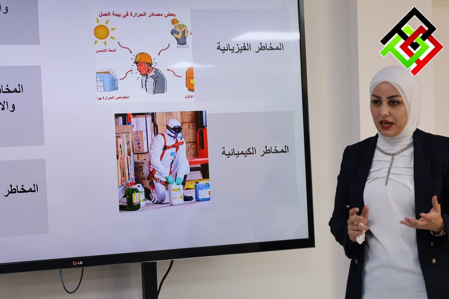 وقد قدمت محاضرات الورشة (مهندس اقدم /رؤى محمد جبر) مستعرضةً أبرز الإجراءات الوقائية الواجب اتباعها في بيئة العمل، وأساليب التعامل مع الحوادث والإصابات الطارئة بما يضمن سلامة العاملين واستدامة بيئة العمل الآمنة.