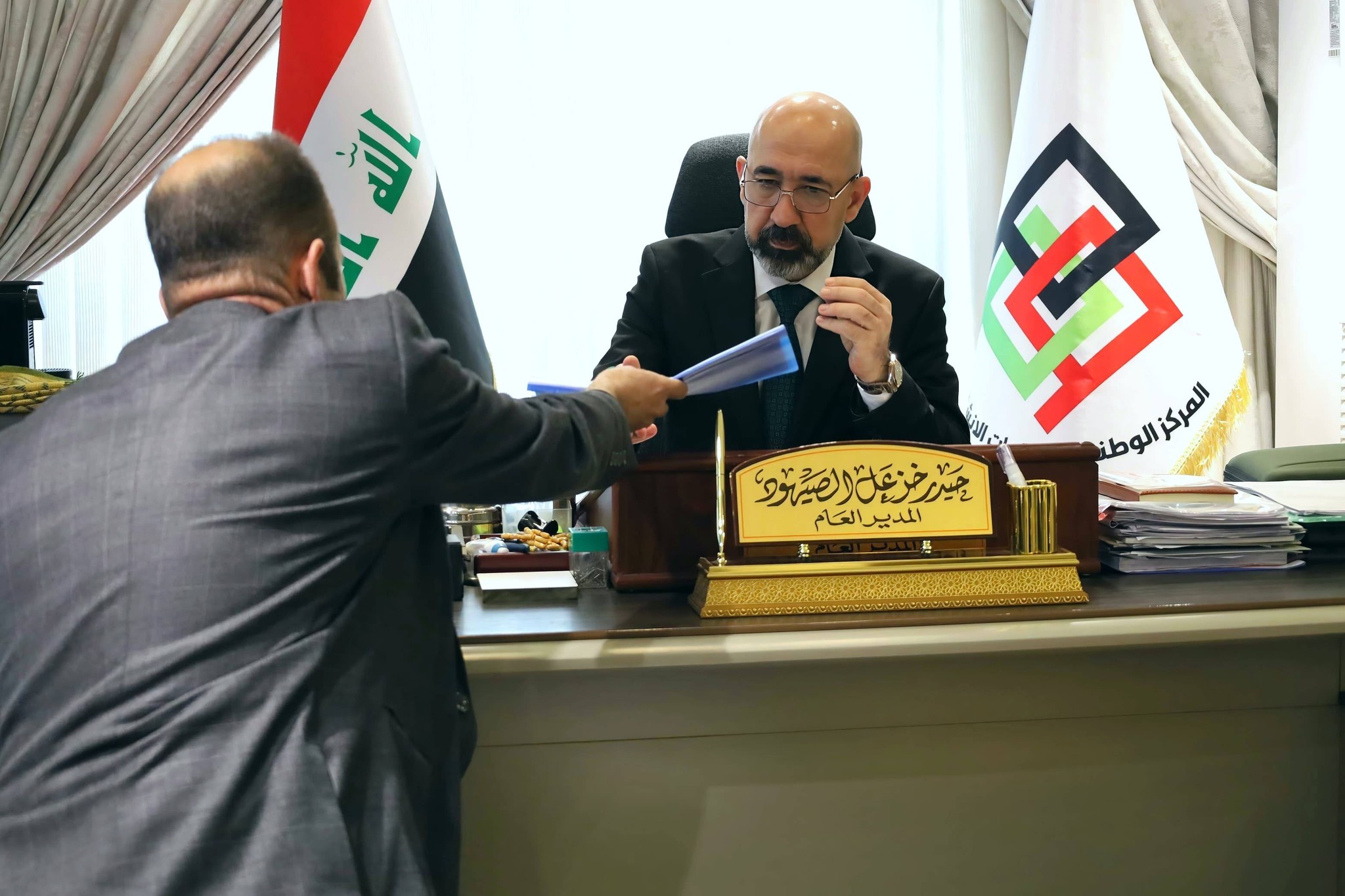 اليوم الثلاثاء الموافق ٢٠٢٦/٤/١٤ عدداً من موظفي المركز في إطار حرصه على تعزيز التواصل المباشر مع الملاكات الوظيفية ومتابعة شؤونهم الإدارية والمهنية.