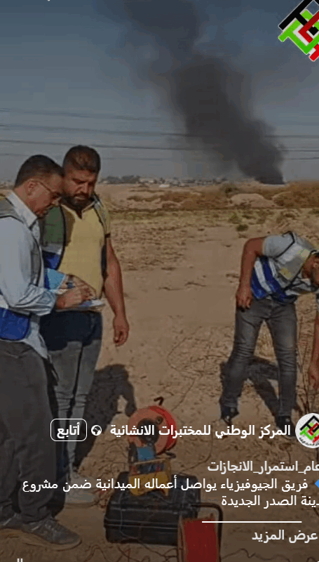 يواصل فريق شعبة الجيوفيزياء في قسم تحريات التربة أعماله الميدانية ضمن مشروع مدينة الصدر الجديدة