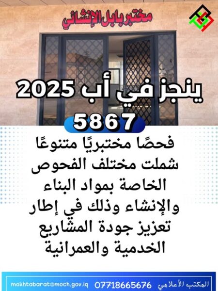 Categories الاخبار زيارة لجنة مختبر الأنبار الإنشائي إلى مختبر ميسان الإنشائي ضمن برنامج التدقيق العشوائي في إطار تنفيذ خطط المركز الوطني للمختبرات الإنشائية الرامية...