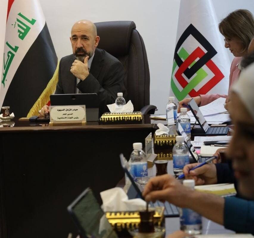 اجتماع اللجنة الاستشارية الثالث لعام (2026)، بحضور مستشار السيد الوزير المهندس (أحمد إسماعيل)، ورئيس قسم السيطرة النوعية في مكتب السيد الوزير الدكتور (سجاد علي محمود)، إلى جانب أعضاء اللجنة.
