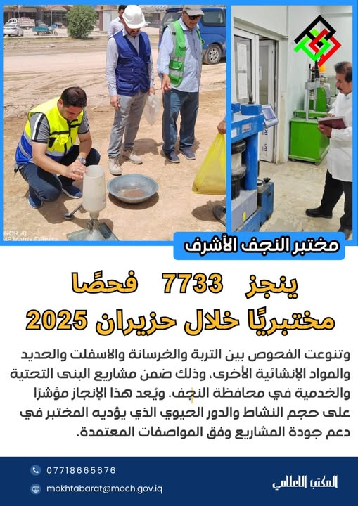 انجاز واعداد فحوص مختبر ديالى الانشائي لشهر آيار 2025